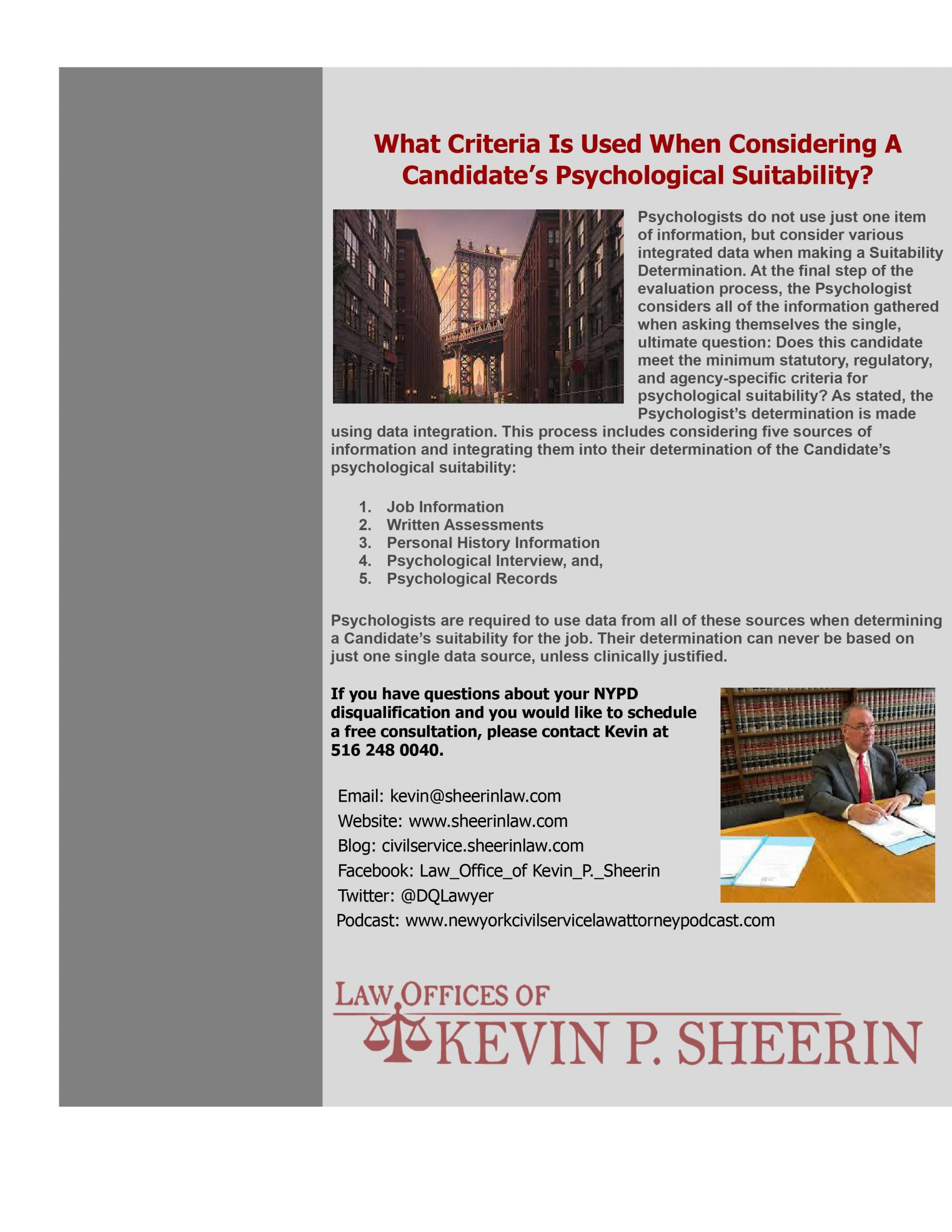 Disqualification Appeals attorney helping candidates appeal New York civil service job disqualifications Call (631)239-5825 email: kevin@sheerinlaw.com